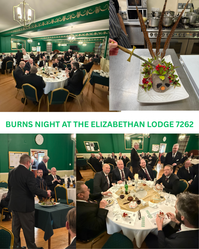 Our January meeting at The Elizabethan Lodge was not only an official visit, welcoming many notable Freemasons including the APGM, but also a celebration of Burns Night.